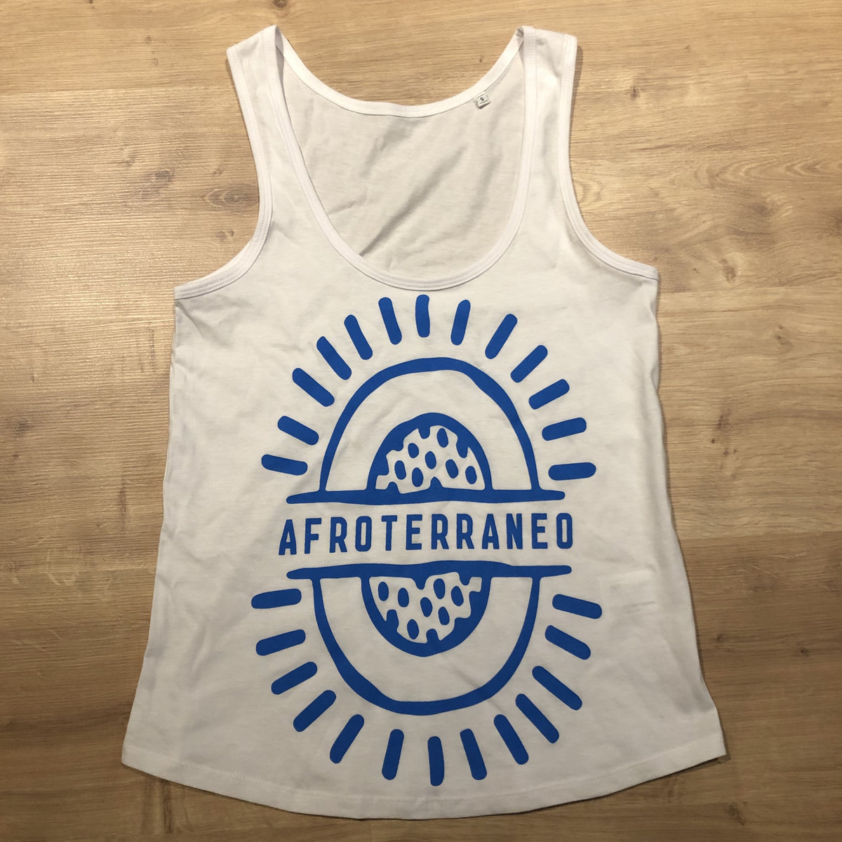 Afroterraneo summer 2019 Blue with white logo t-shirt