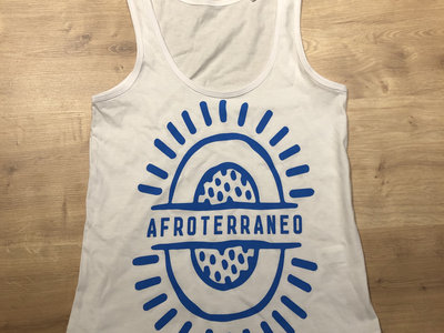 Afroterraneo summer 2019 White with blue logo t-shirt